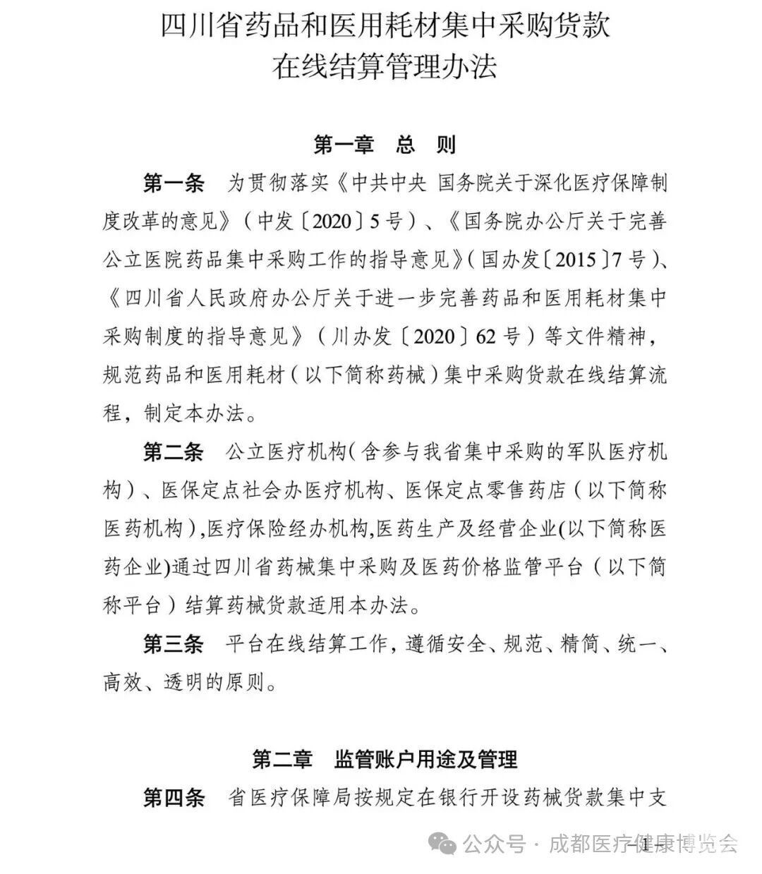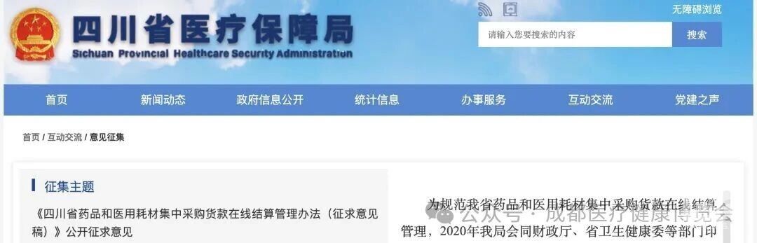 近日,四川醫(yī)保局發(fā)布《四川省藥品和醫(yī)用耗材集中采購貨款在線結算管理辦法(征求意見稿)》(簡稱《意見稿》,完整見文末)。